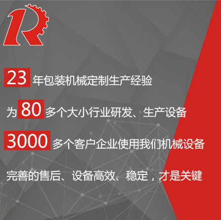 廣州市睿佳機(jī)械設(shè)備有限公司是國內(nèi)專業(yè)從事自動化包裝機(jī)械產(chǎn)品,集研發(fā)、生產(chǎn)、銷售、服務(wù)于一體的制造公司,已通過ISO9001:2008質(zhì)量體系認(rèn)證,部分系列產(chǎn)品已通過歐盟CE認(rèn)證。 經(jīng)過多年的發(fā)展,公司專業(yè)生產(chǎn):封尾機(jī),灌裝機(jī),旋蓋機(jī),貼標(biāo)機(jī),包裝機(jī),輸送機(jī),噴碼機(jī),灌裝生產(chǎn)線等機(jī)械設(shè)備。企業(yè)以開發(fā)生產(chǎn)包裝機(jī)械和訂做特殊包裝機(jī)械為主,所生產(chǎn)的包裝機(jī)械在同行和客戶中都得到一致的贊賞,以高技術(shù)和穩(wěn)定的質(zhì)量遠(yuǎn)銷東南亞和歐美。在國內(nèi),也成為多家知名藥廠、食品廠、化妝品廠指定使用產(chǎn)品。 睿佳機(jī)械:“想客戶之所想,急客戶之所急”既是睿佳對廣大客戶的承諾也是睿佳的宗旨,睿佳將與時代同步、銳意進(jìn)取,以更優(yōu)質(zhì)的服務(wù)回報廣大客戶對睿佳的信賴和支持。